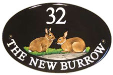 These durable weatherproof ceramic plaques are moulded and fired the traditional way. They are either black or white plaques and have a gloss finish. Every sign is hand painted from start to finish. We can therefore create any layout with any design combination.