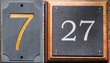 We make house number signs in almost all the different materials we use - cast metal, slate, marble, granite, corian, reflective, wooden, engraved brass and laminate,clear acrylic and ceramic. Prices start @ £12.50