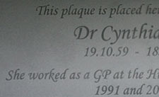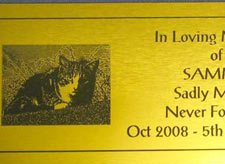 Brass is the traditional material used for memorial plaques. The main disadvantage is that if you want it to stay bright and shiny you will need to keep polishing it! For small plaque with small letters, scratch engraving is often used. Minimum letter size 5mm