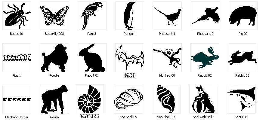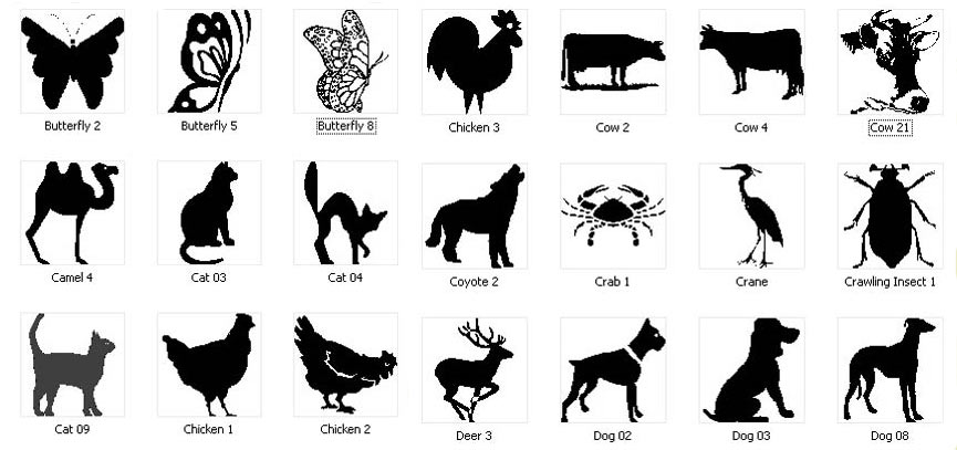 Animal Silhouttes - Page1, Page 2, Page 3, Page 4 NB - Very fine lines can not be used on small sand blasted or small cut vinyl NB - Maximum size for laser engraved - 575mm x 300mm Check with workshop