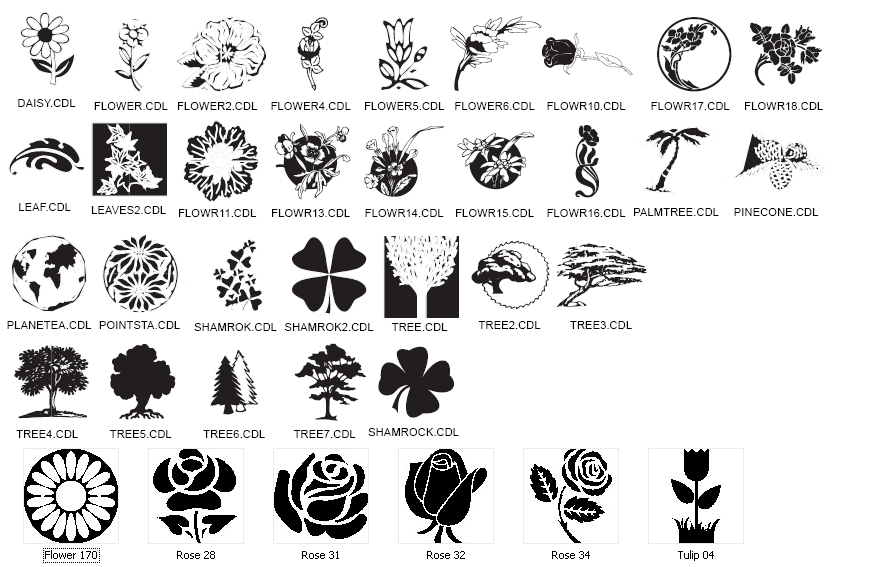 Tree and Flower Silhouttes NB - Very fine lines can not be used on small sand blasted or small cut vinyl signs NB - Maximum size for laser engraved work - 575mm x 300mm Check with workshop