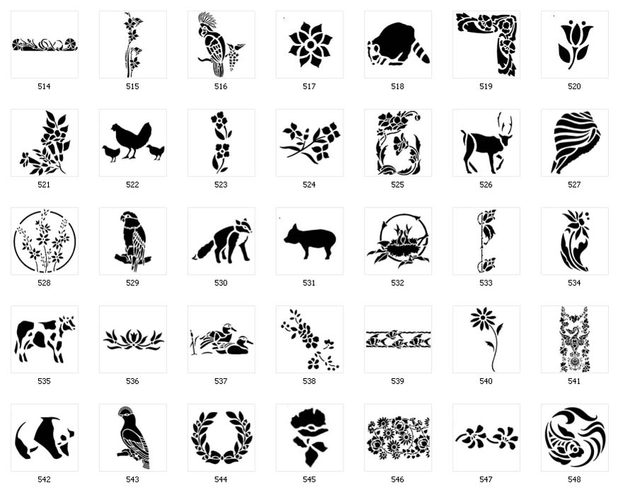Nature Stencils Page 1Page 2Page 3 Page 4 NB - Very fine lines can not be used on small sand blasted, cut vinyl signs or single colour garments
