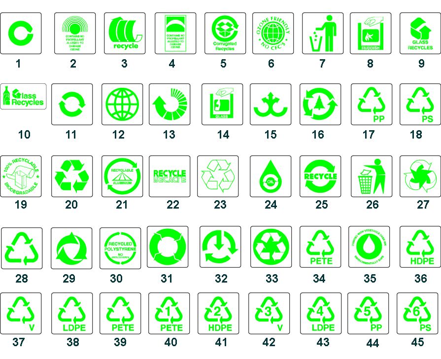 Recycle Symbols NB - Images with fine lines can be printed and engraved, but cannot be used for small sandblasted or cut vinyl signage.