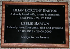 A great material for memorial plaques. They look good and are maintenance free. The lettering can also be quite small as it is engraved through the black surface to show the silver/white beneath. Can be supplied on backing boards. Minimum letter size 2mm