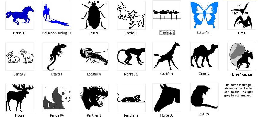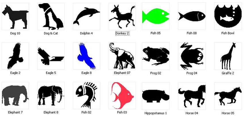 Animal Silhouttes - Page1, Page 2, Page 3, Page 4 NB - Very fine lines can not be used on small sand blasted or small cut vinyl NB - Maximum size for laser engraved - 575mm x 300mm Check with workshop