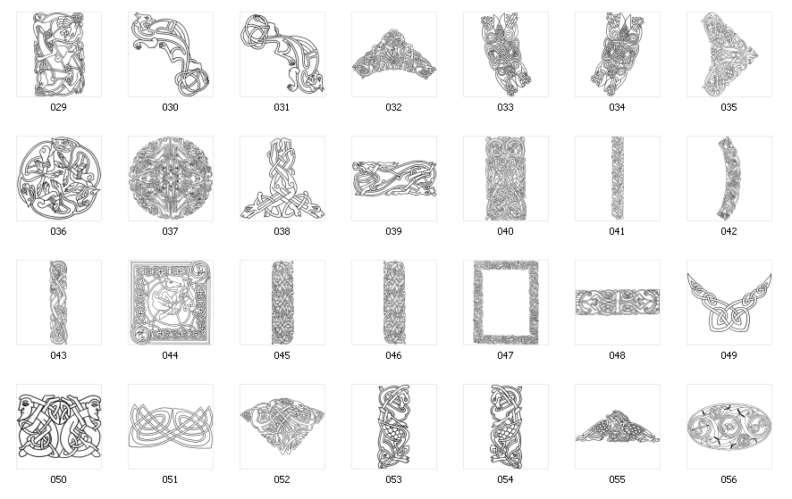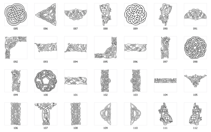 Celtic Designs - Page1, Page 2, NB - For sand blasted and cut vinyl signs use bold designs only. NB - Maximum size for laser engraved work - 575mm x 300mm Check with workshop