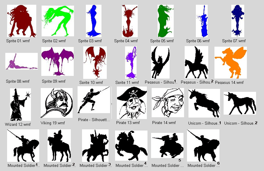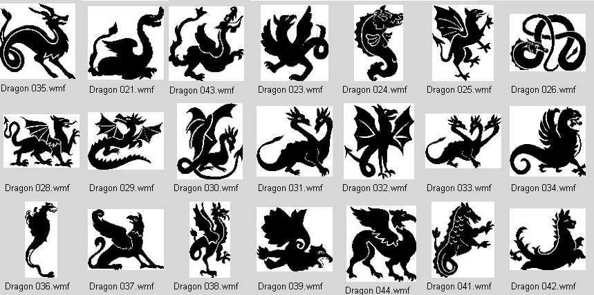 Fantasy Silhouttes NB - Very fine lines can not be used on small sand blasted or small cut vinyl signs NB - Maximum size for laser engraved work - 575mm x 300mm Check with workshop