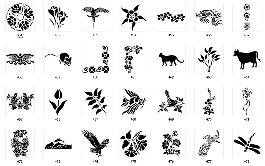 Nature Stencils Page 1Page 2Page 3 Page 4 NB - Very fine lines can not be used on small sand blasted, cut vinyl signs or single colour garments