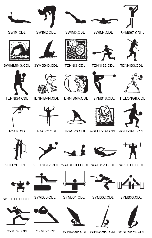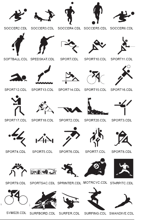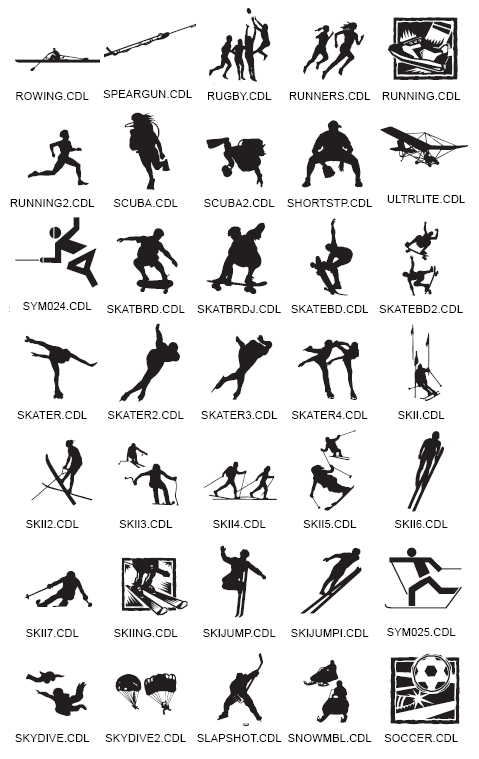 Sport Silhouttes - Page1, Page 2, NB - Very fine lines can not be used on small sand blasted or small cut vinyl signs NB - Maximum size for laser engraved work - 575mm x 300mm Check with workshop