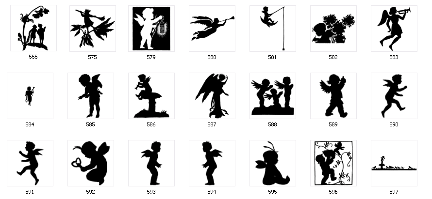 Vintage Angels, Cherubs, Fairies and Witches NB - Very fine lines can not be used on small sand blasted or small cut vinyl signs NB - Maximum size for laser engraved work - 575mm x 300mm Check with workshop